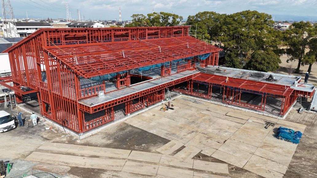 鉄骨建方が無事完了いたしました。